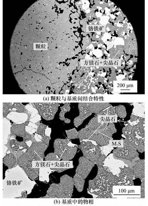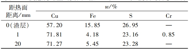 侧吹炉被广泛应用于金、银、铜、铅、锡等有色金属的冶炼加工。侧吹炉炉衬耐火材料需要具备耐高温、热稳定性好、荷重软化温度高、抗氧化、耐高温熔液及熔体冲刷性能优异以及不参与冶炼造渣的使用特性。基于以上侧吹炉对炉衬材料的性能要求,镁质耐火材料常用作侧吹炉的耐火内衬。为了提高炉衬材料的抗侵蚀性能,与铜铳熔体及熔渣接触部位,如炉缸、渣室等的炉衬材料多采用Cr₂O₃含量较高的镁铬质耐火材料。近年来国内外对铜冶炼炉的工艺研究及耐火材料损毁机制研究多集中于奥斯迈特炉、艾萨炉、底吹炉、转炉等炉型,对侧吹炉用镁铬质耐火材料的损毁机制研究较少。为了保证新工艺下侧吹炉的安全稳定运行,提高炉衬材料使用寿命,对目前侧吹炉工况苛刻部位的用后镁铬砖进行侵蚀损毁机制分析,以期对侧吹炉用镁铬耐火材料的质量提升与创新提供参考。